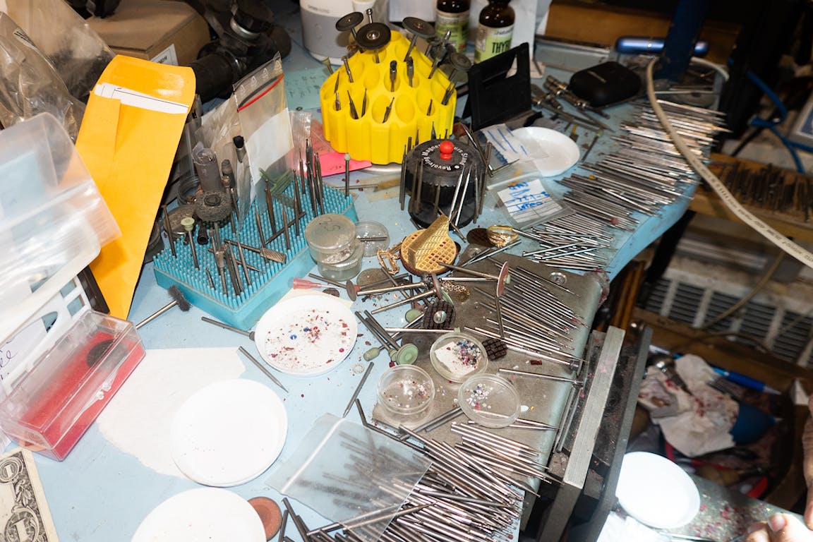 With its 21 floors stacked with incredible artisans from around the world, the Mallers Building at 5 South Wabash is particularly special. While the inventory behind these walls is precious, the people within these floors bring the real value, especially considering the current crossroads between design and manufacturing. For better or worse, technology is changing many of our professions and we are collectively trying to determine whether or not AI will replace our jobs. It’s likely that some components of jewelry making will be, but there is nothing like a hand-fabricated piece of jewelry. From the rigorous design process, carving wax by hand, to the final stages of finishing—polishing and stone setting—handcrafting jewelry is truly a labor of love. Taken on a Sony RX100 VI, these snapshots are a behind-the-scenes look at the people, spaces, and tools that fuel that labor in the Mallers Building of Jewelers Row.