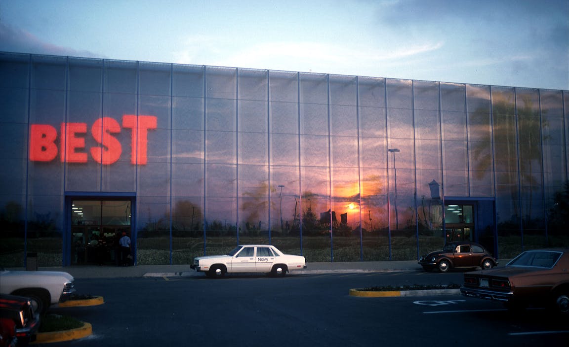 Our shared experience of architecture is often marked by the stores we shop, the places we inhabit. From the rise and fall of Follies to the never-ending reign of Walmart. Typically these places are benign set dressing rarely acknowledged consciously. That is until we realize what we took for granted. We collectively lament the loss of these places and many get lost in the sands of time. Others like Blockbuster become a hauntological poltergeist forced to live out its zombified last days as an Airbnb, TV show set piece, or even a novelty tourist attraction, gawked at like an endangered species behind zoo glass. Though in most cases some remnants of these places remain, whether that be in the repurposed yet distant façade of a Family Video—its once beaconing glass block pillar now holding up the corner of a Spirit Halloween sign—others live on in our hearts through a collective ennui. What if the Best of these tales has gone mostly forgotten and virtually scrubbed from existence?